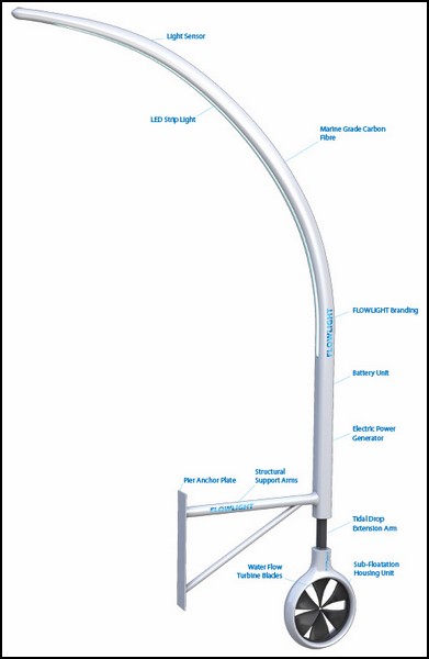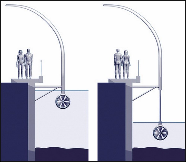 Shane Molloy позаботился и о приливах с отливами: турбинки его микро-ГЭС крепятся к подвижной телескопической опоре. Когда начинается прилив, они всплывают, а при отливе - погружаются глубже, ибо к ним приделаны поплавки. Естественно, производительность такой электростанции будет совсем невысокой, но и ее с лихвой хватит для освещения улиц - особенно если применять энергосберегающие лампы нового поколения.
